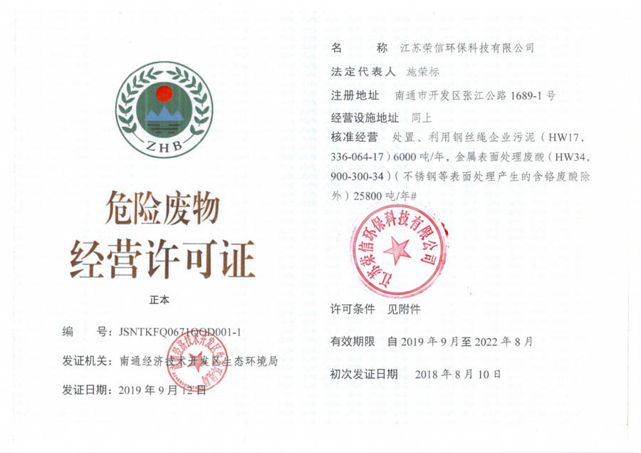 危險廢物經(jīng)營許可證